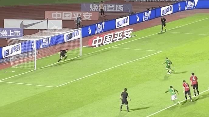 上半场末段,重庆队打出连续进攻,但深足门将张鹭表现神勇,两连扑将皮球拒之门外。
