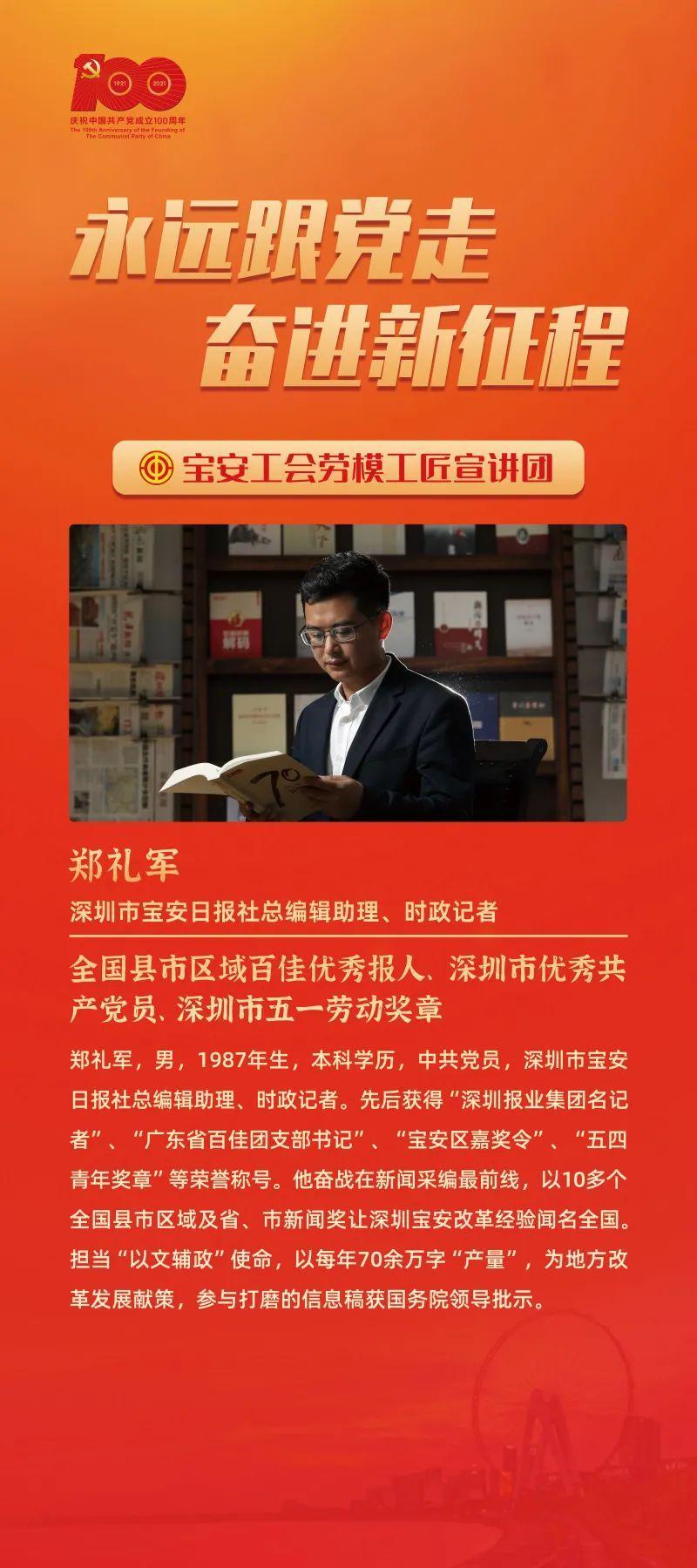 为庆祝中国共产党成立100周年,深入学习贯彻习近平总书记“七一”重要讲话精神,充分发挥劳模和工匠的示范引领作用,讲好劳模故事、劳动故事、工匠故事,弘扬劳动最光荣、劳动最崇高、劳动最伟大、劳动最美丽的社会风尚。区总工会定于7月23日举办宝安工会劳模工匠宣讲活动启动仪式暨首场宣讲会。