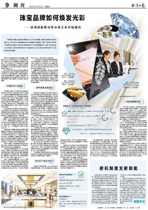 我国是全球最大的黄金消费国、第二大钻石消费国,也是彩宝翡翠主要的消费市场。深圳市作为我国黄金珠宝业规模最大的集聚区,面对广阔的市场前景与全新的市场需求,该如何实现黄金珠宝产业的高质量发展?经济日报记者深入采访发现,目前深圳黄金珠宝产业规模虽大,但产业链条仍有待完善,产业转型升级迫在眉睫。