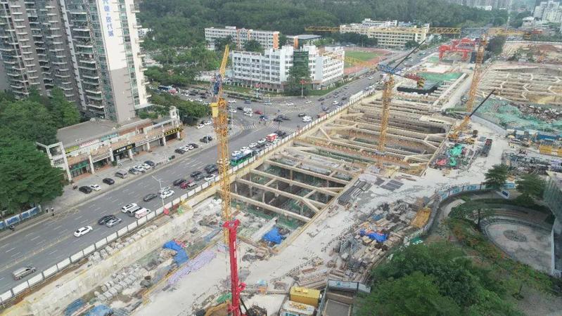 数码城站位于龙岗中心城区,周边环境复杂,由于站体结构超长超宽,占道施工和交通疏解围蔽难度极大。