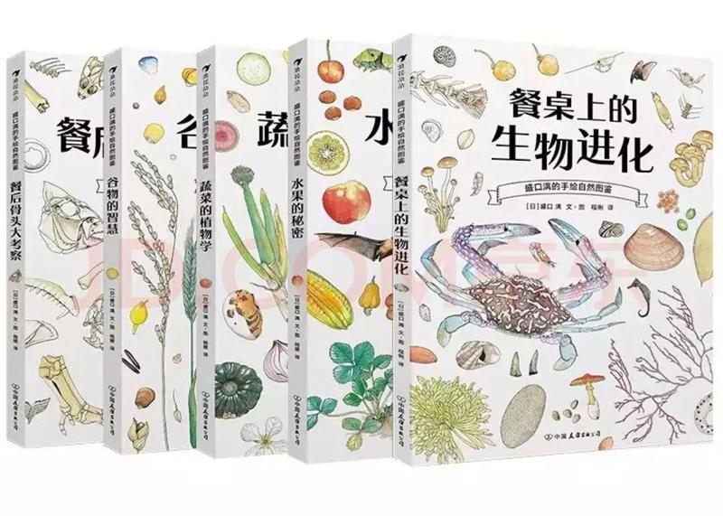 “盛口满的手绘自然图鉴”目前已上市五册,分别是:《水果的秘密》《蔬菜的植物学》《谷物的智慧》《餐桌上的生物进化》《餐后骨头大考察》