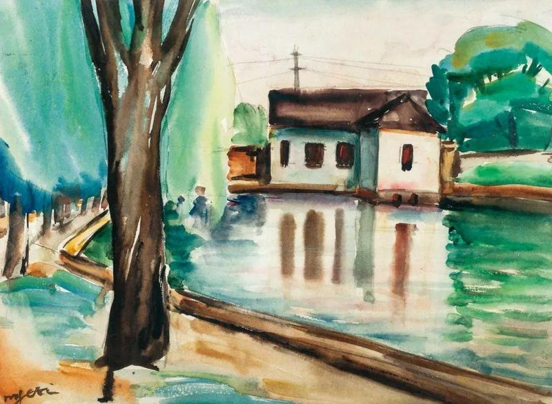 6倪贻德(1901-1970) 笔名尼特。浙江杭州人。1919年考入上海美术专科学校学画,毕业后留校任教。著有《玄武湖之秋》、《东海之滨》等文学作品,参加"创造社"。1927年留学日本,入东京川端绘画学校学画。1928年回国,在广州、武昌、上海等地从事美术教育。1931年与庞薰琹等人发起组织"决澜社"。曾撰写《西洋画概论》、《水彩画新研究》、《画人行脚》等著作。