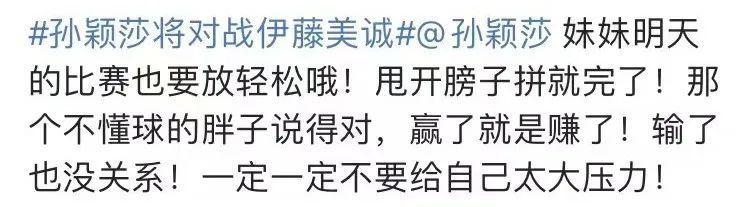 网友在微博留言集体为孙颖莎加油