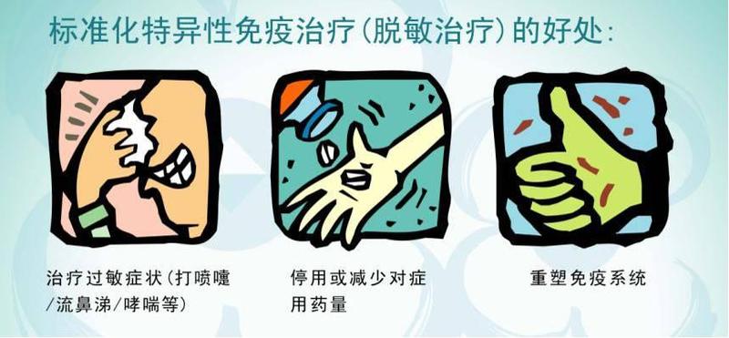 脱敏治疗,即标准化的特异性免疫治疗,是世界卫生组织针对过敏性疾病“四位一体”治疗体系中唯一能改变免疫机制的对因治疗方法。其原理是经过正确检测获得患者过敏原(变应原)类型后,将该变应原制成变应原提取液并配制成各种不同浓度的制剂,经皮下反复注射或舌下含服与患者反复接触,剂量由小到大,浓度由低到高,达到维持剂量后,维持足够的疗程,从而提高患者对该种变应原的耐受性,当再次接触此种变应原时,过敏现象得以减轻或不再产生过敏现象。