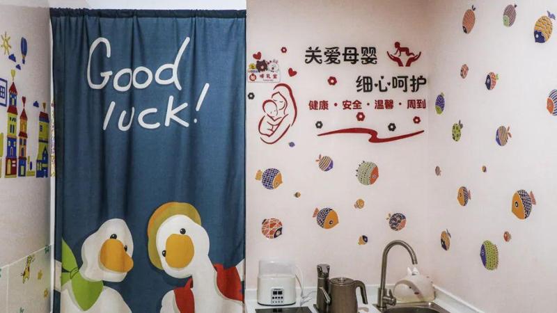 多功能区专门留了一个空间作为母婴室,方便带宝宝的母亲在活动室解决一些与宝宝相关的问题,母婴室的整体设计也是卡通可爱为主基调。