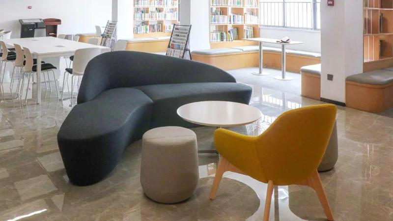 成人阅览区的藏书量为6212册,报纸杂志配备也超过200种。和儿童活动区相邻区域有沙发及座椅,图书环绕区域有白色座椅,读书阅览自习均可选择自己的爱好选择区域。