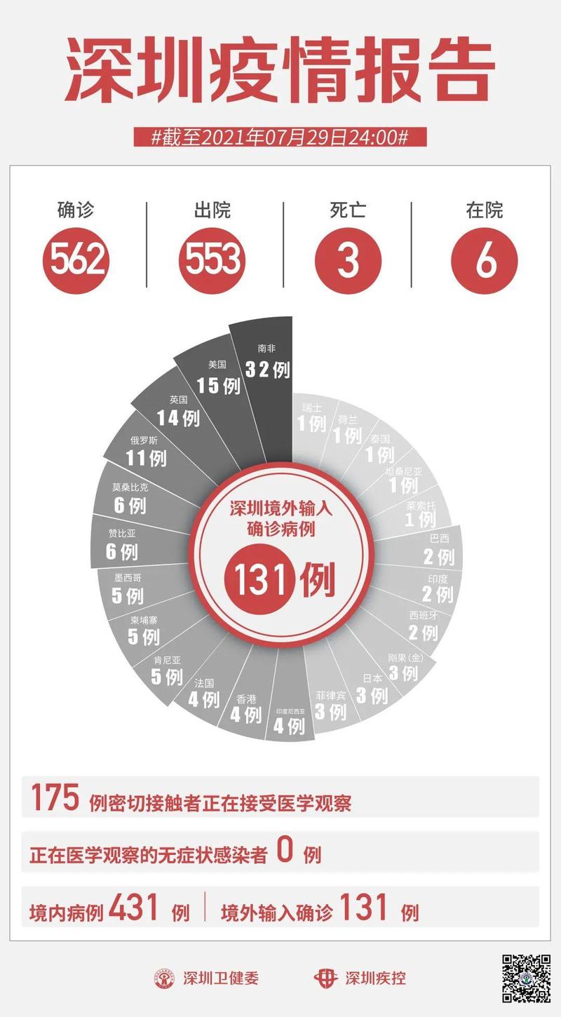 7月29日0-24时,深圳无新增确诊病例和无症状感染者。