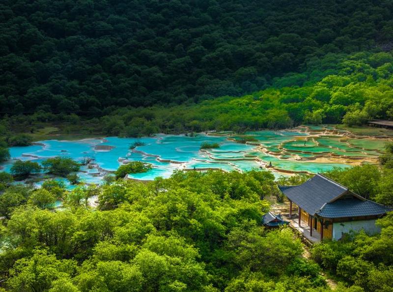 与此类似的还有四川的黄龙风景区。黄龙风景区是中国保护非常完好的高原湿地。彩池、雪山、峡谷、森林等自然奇观为冒险游戏《原神》的创作带来了灵感,黄龙景区艳丽奇绝的五彩池,就是《原神》璃月地区“渌华池”的现实原型。同时,《原神》特有的IP魅力,也为景区注入了更多活力。