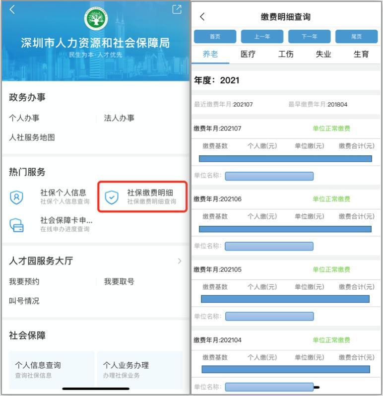 查询社保缴费明细