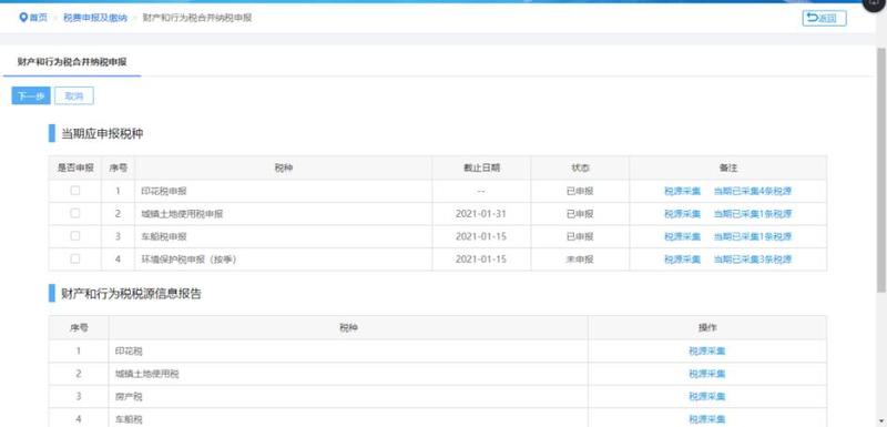 4. 为提高多税种申报效率,实现城镇土地使用税、房产税、车船税、印花税、耕地占用税、资源税、土地增值税、契税、环境保护税、烟叶税 “一张报表、一次申报、一次缴款、一张凭证”。