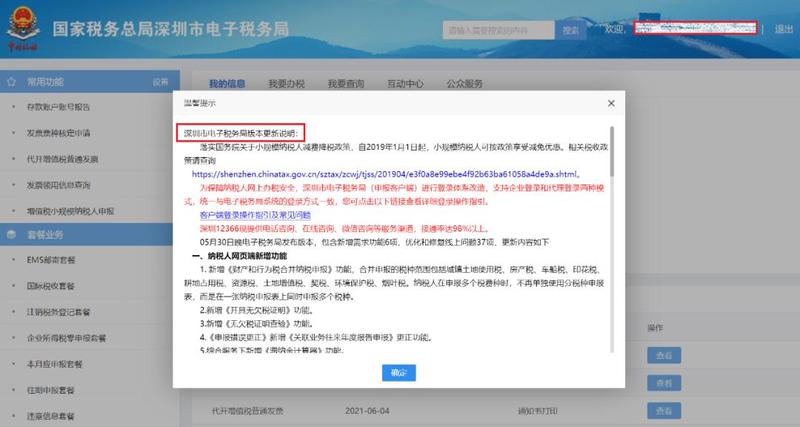 2.电子税务局版本更新前均会在“深圳市税务局官网-信息公开-通知公告”发布通知,更新后会在登录后弹窗显示,7月后在功能的侧边栏也可点击查看操作手册、办税指南和版本更新内容啦。