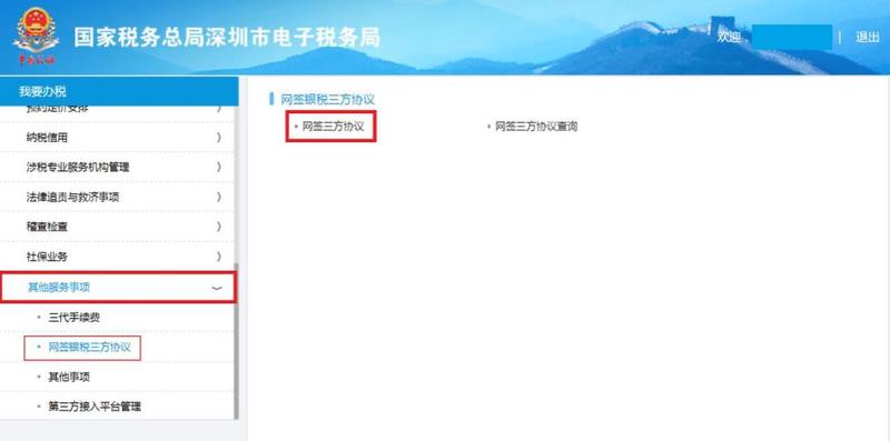 可点击【其他服务事项】—【网签税银三方协议】—【网签三方协议】。