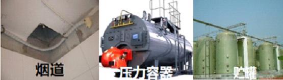 如船舱、贮罐、车载槽罐、反应塔(釜)、冷藏箱、压力容器、管道、烟道、锅炉等。