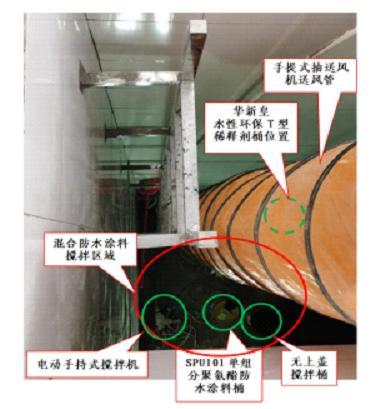 (2)事发泵房水池西南侧水池属于有限空间,自然通风不良,涉事工人在事发泵房水池西南侧水池内混合搅拌聚氨酯防水涂料、水性环保 T 型稀释剂和涂刷作业时,水性环保 T 型稀释剂中的二氯甲烷、三氯甲烷挥发到水池空气中,造成水池内二氯甲烷、三氯甲烷等有毒有害气体积聚,工作环境中存在不安全因素。