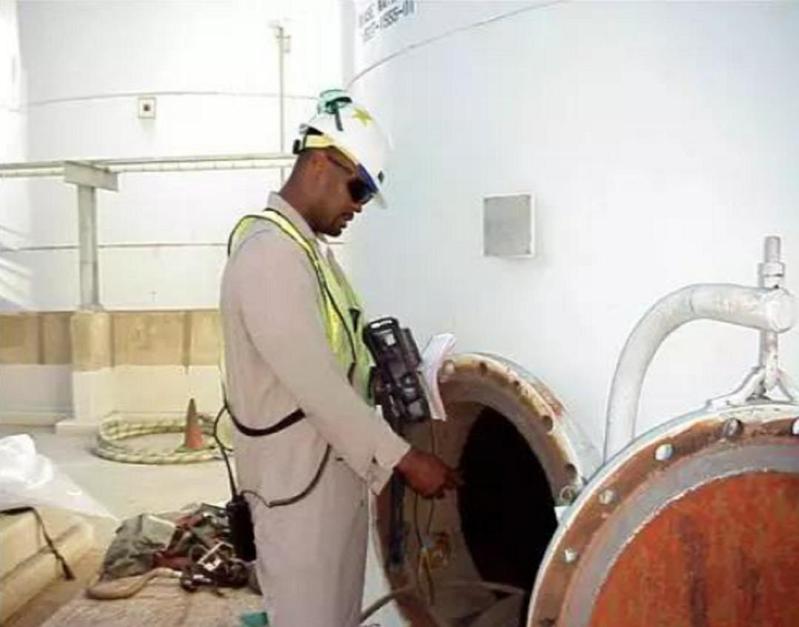 存在有限空间作业的企业,应严格执行“先通风再检测后作业”的原则,未经通风和检测,严禁作业人员进入有限空间作业。而且,工作环境发生变化时,应视为进入新的有限空间,重新通风和检测后方可进入。实施检测时,检测人员应处于安全环境,检测时要做好检测记录,包括检测时间、 地点、气体种类和检测浓度等;检测指标包括氧浓度值、易燃易爆物质(可燃性气体、爆炸性粉尘)浓度值、有毒气体浓度值等;检测标准与检测工作应符合相关标准和要求。