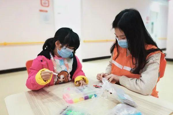 2020年2月,宝安区未成年人救助保护中心工作人员正在陪同救助对象小红(化名)做手工