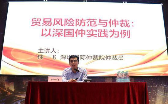 林一飞主讲题目为“贸易风险防范与仲裁:以深国仲实践为例”,他结合了具体的仲裁案例,对当下贸易纠纷仲裁中企业普遍关注的问题进行了深度剖析,引导企业依法依规发展,提升防范国际贸易风险的能力。