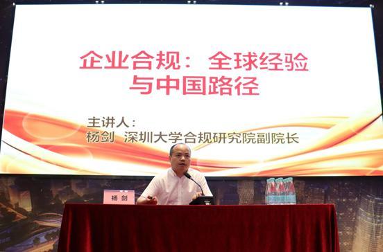 杨剑主讲题目为“企业合规:全球经验与中国路径”,他从国际国内两个方面出发,对合规发展的历史和趋势进行了介绍,为前海合规建设提出了建议。