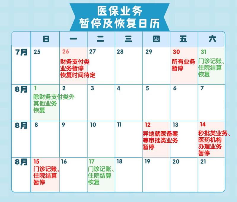 关于医保业务暂停的安排,有没有更清晰的时间线?