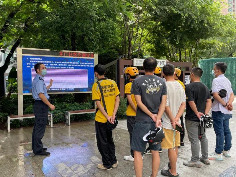 为做好“电动车新条例”及“骑行戴头盔”的社会面宣传,8月2日起,罗湖交警针对“电动自行车戴头盔敬告劝导”统一行动中查处的人员清单,组织涉外卖、快递行业的电动车驾驶员开展交通安全再教育活动。