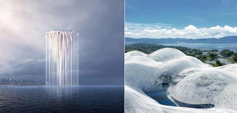 (左)深圳前海新城中心地标竞赛方案“塔” / 藤本壮介(右)深圳海洋博物馆竞赛方案 / SANAA