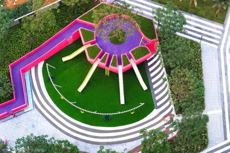 位于项目中心的游乐场的不仅是深圳这个城市的实验性质的证明,也是深圳居民的实验性质的证明。这种由植物、图案、色彩和材料构成的爆炸性的姿态,如此迅速地被文化所吸收,成为常见的、典型的,甚至是通用的,这就是深圳进步的本质和面向未来的快速发展的真实证明。