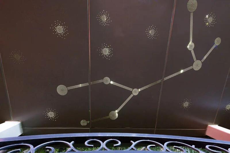 夜晚的奇幻的照明装饰让游乐场的轮廓更加令人印象深刻。闪闪发光的光点嵌入地板中,营造出神奇的环境效果,而定制的藻类灯则安装在周边,以提供整体和身临其境的海洋体验。