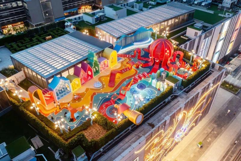 以海洋动物为灵感,营造梦幻般沉浸式儿童游乐体验的屋顶改造项目。