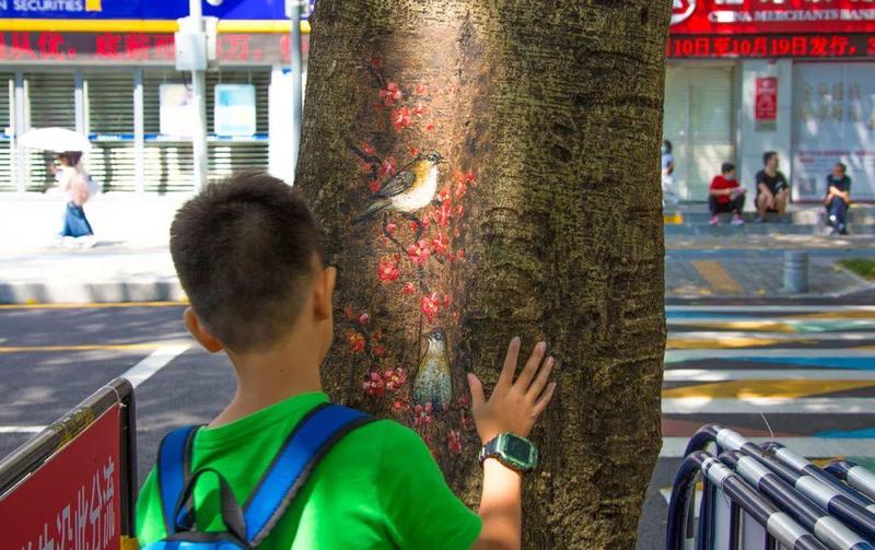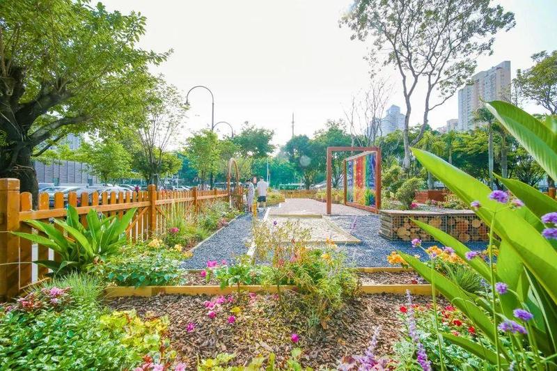 如果说前面介绍的儿童乐园是以无动力游乐设施为主的,那么这个案例则是多方位的儿童友好型典范。百花二路位于深圳市福田白沙岭片区,全长约750米,项目周边集聚十一所名校资源,是深圳标杆性的教育基地。项目依托政府“一路一街”改造计划,从儿童友好出行及快乐成长角度出发,结合空间慢行、建筑立面、智慧人文多个维度提升,全方位打造深圳第一个儿童友好示范性街区,满足片区儿童及居民安全出行、互动交流的多元需求,提供人文趣味的场所体验。