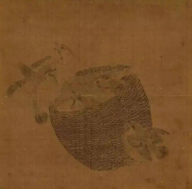 这幅宋画名作完美的刻画出雀巢内外忙着振翅欲飞的雏雀们可爱的瞬间之姿。作品未描绘背景,而是采用水墨及淡彩, 以异常细腻的笔风,准确描绘出雀巢及雏雀。画面真实的仿佛可以听见雏雀的鸣声和振翅声,雏雀羽毛的细腻表现,以及与此形成鲜明对比的雀巢线条的刚劲且直接的表现方式,可以看出画家的不俗功力。狩野惟信(养川院)在箱书(即名作相关记录)中曾将其作为南宋画院画家宋汝志之作,但并无确证。宋汝志为钱塘(浙江省杭州)人,南宋末期的理宗景定年间(1260~64)左右供职于宫廷。据说其师从同为画院画家的楼观,长于山水、人物、花竹、翎毛的绘画。相传在南宋灭亡之后,其归入道教做了道士,但详细情况不甚明了。一般认为该作品与船载运至日本的其他宋画的小挂轴一样,原本是作为画册而绘制的,但舶至日本后,为了配合茶道情趣而将其改装成挂轴以供鉴赏。浅野家旧藏品。