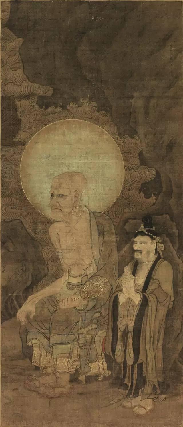 梁楷,南宋宫廷画家,擅绘人物、山水、道释、鬼神。师从南宋初期的宫廷画家贾师古,且画风飄逸,被赞誉为青出于蓝,据说其精妙笔法令宫廷之中无人不为之折服。出山释迦图与雪景山水图是展示梁楷精妙笔法的人物画与山水画的代表之作。出山释迦图所绘的是释迦在领悟长期苦行并非证悟之道后走出深山的姿态,从图中的落款“御前图面 梁楷”来看,明显可知此为他在宫中所创作的作品。而释迦容貌的精细写实表现手法早已超越形似,似乎向人们传递着释迦的内心,实为佳作。