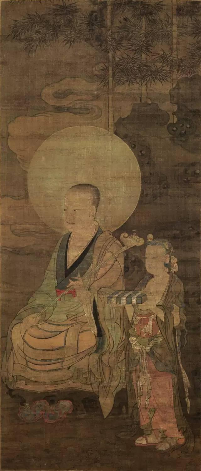 马远为南宋中期代表性的画院画家,长于山水人物画。本图描绘的是曹洞宗祖师洞山良价在云游途中,涉水之时见到自己水中之影而恍然大悟的一刹那,是为数不多的马远的真迹之一。图上有南宋皇帝宋理宗的皇后杨妹子之题字。本与天龙寺所藏的云门大师图、清凉法眼禅师图同为描绘禅宗五祖的画作之一。田中丰藏旧藏品。