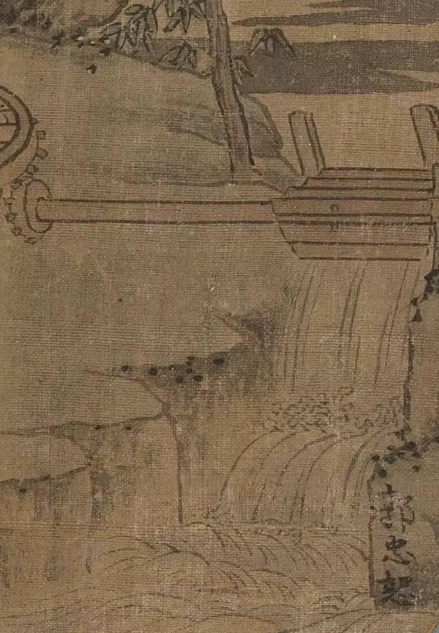 作为这种小景画的遗作,有传赵大年笔的《山水图》(重要文物、大和文华馆收藏),本图中大雁、小鸟等描绘技法元素与其类似,但上图采用开放式构图的表现手法,而本图则具有向心性,在描绘上更追求精致,自然地透露出一种有别于其他画作的风格。经推测,其制作年代应不晚于南宋初期,可谓是小景画乃至宋代山水画的珍贵遗作。