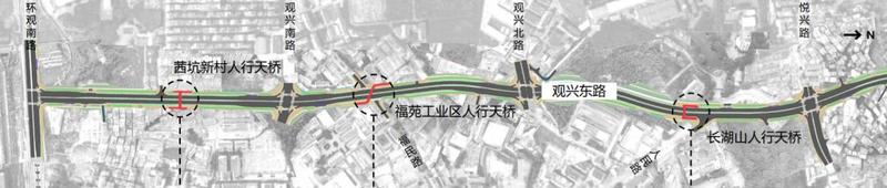 当前,观兴东路沿线住宅及工业厂房密集,但缺少市政配套设施,南北向对外交通主要依赖观澜大道。