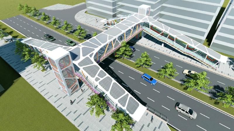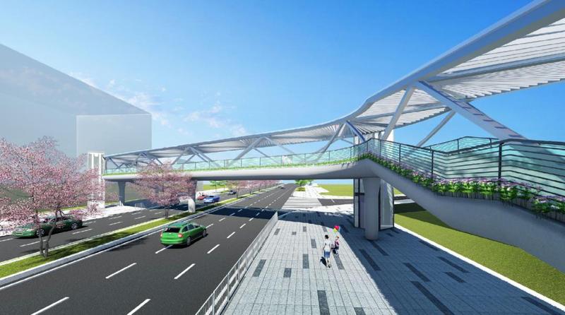 跨越观兴东路东西,双梯道人行天桥,服务于周边居住区,两侧分别设置垂直电梯。