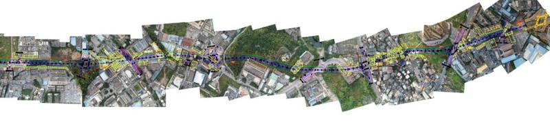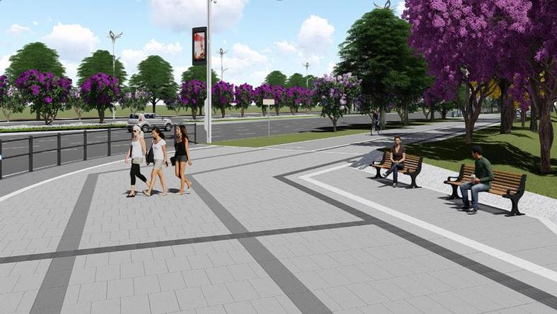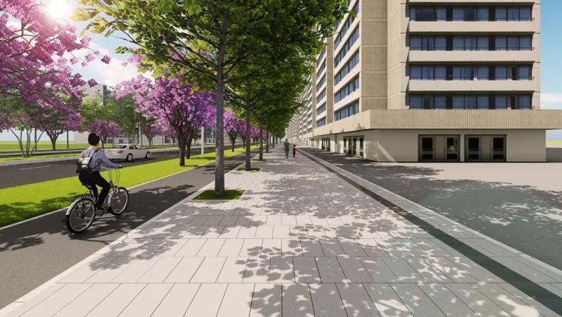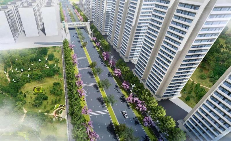 道路规划红线宽度为50米,双向6车道,沿线拟建3座人行天桥。