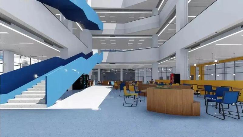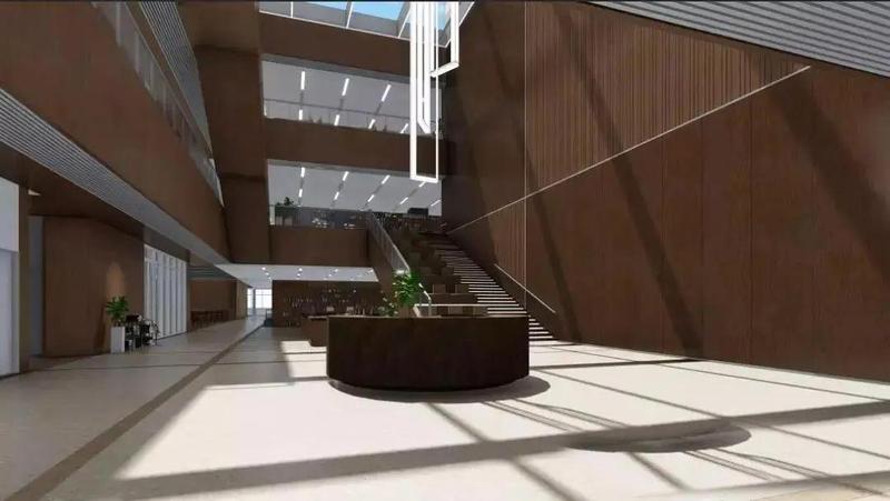 “图书馆最大的特点是采用钢结构打造,不仅施工工期短且能最大限度的利用空间。”项目管理团队表示,图书馆建设采用的是蜂窝梁,也就是在钢梁的腹板开有若干个蜂窝形状的孔洞,所有机电管线穿孔而过,并不侵占使用空间。而常规项目的钢筋混凝土结构主梁内不可以开孔,机电管线要从梁的下方穿过,这样一来吊顶以下使用空间就相应减少。