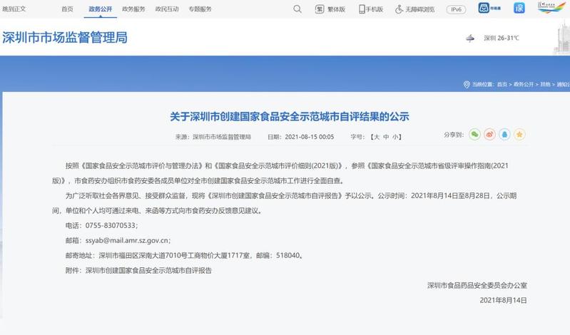 重磅!深圳创建国家食品安全示范城市自评报告最新出炉!
