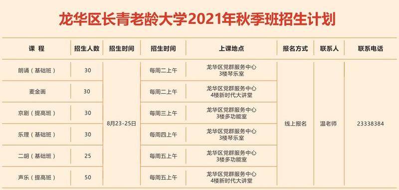 快来报名!龙华区长青老龄大学招生啦~