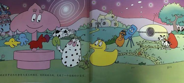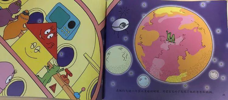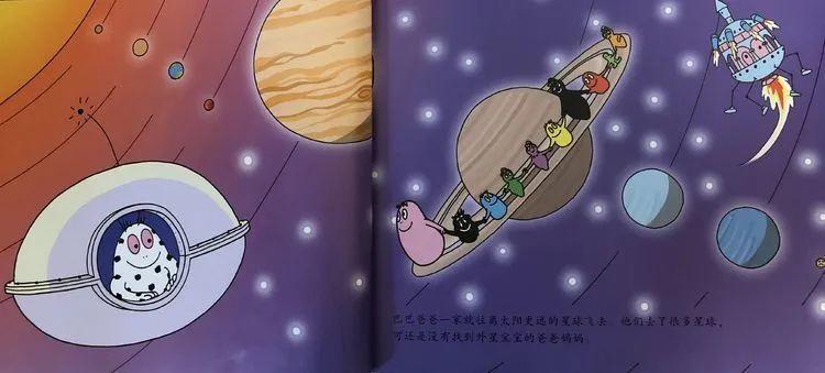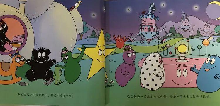 巴巴爸爸一家就往离太阳更远的星球飞去。他们去了很多星球,可还是没有找到外星宝宝的爸爸妈妈。