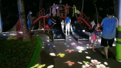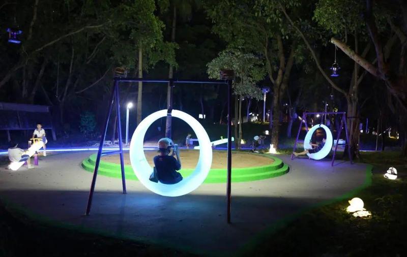 还增设了户外滑梯、光影小品等游乐设施