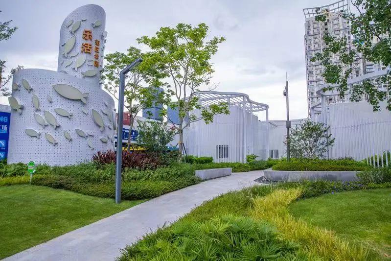 据悉,为尽量打消居民的疑虑,罗湖区城市管理和综合执法局联合水务部门,巧用空间,打造了一处美观性与功能性兼具的乐活社区公园——将地块底部建设成泵房,泵房的表面则以“乐活”为设计理念,打造精致靓丽的开放式社区公园。