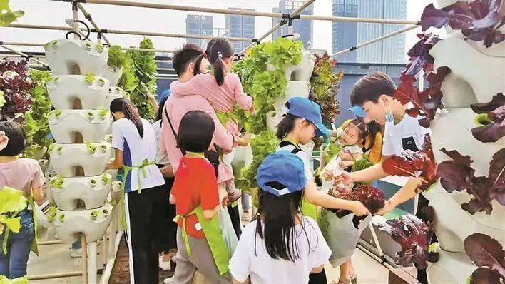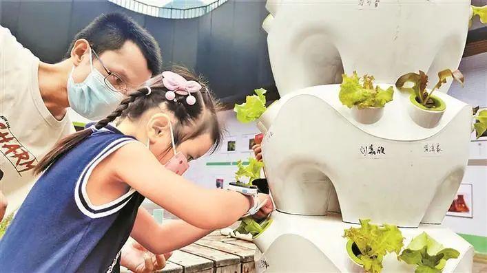 现场还有许多市民带着孩子来参观,为了让孩子近距离观察蔬菜,有的家长还把孩子抱起来让孩子"一探究竟"。"蔬菜种植运用的是无土栽培技术,根部不是生长在土壤中,而是长在空气中的。"农场相关负责人向孩子解释道,随后,不少家长孩子种下小苗,并在旁写下姓名,在小茁农场,仿佛置身于乡间田野。