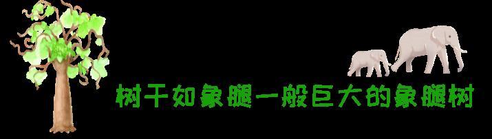 象腿树有着灰白色的树皮,象腿一样巨大的树干,又生长在非洲,怪不得一来到中国就被叫做象腿树。象腿树巨大的“储水罐”可成功应对非洲的旱季。为了保护好自己的“储水”,象腿树的树皮和树叶能散发出强烈的辣味,让动物不喜欢啃食,间接保护自己辛苦收集的水分。