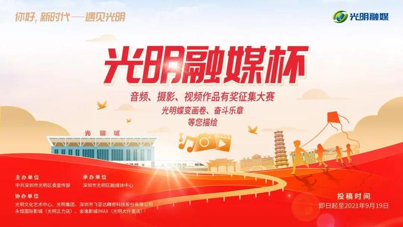 6、你眼中的光明是怎样的?“光明融媒杯”作品大赛邀你来描绘!8月17日起,《你好,新时代——遇见光明》“光明融媒杯”作品大赛正式启动,大赛结合光明区成立3周年和高质量高颜值发展,征集视频、照片、音频作品,即日起至9月19日,将作品上传“光明融媒”app“明心桥”栏目即可参赛。详情>>