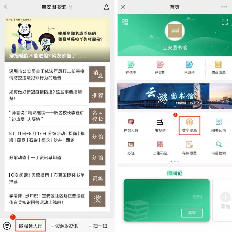 微信关注宝安图书馆或宝图在线→从底部菜单栏进入微服务大厅→数字资源→QQ阅读