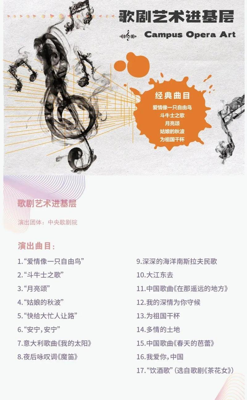 现场由中央歌剧院实力演绎“爱情像一只自由的小鸟”、“斗牛士之歌”、“月亮颂”、“姑娘的秋波”和“为祖国干杯”等经典曲目,敬请期待。