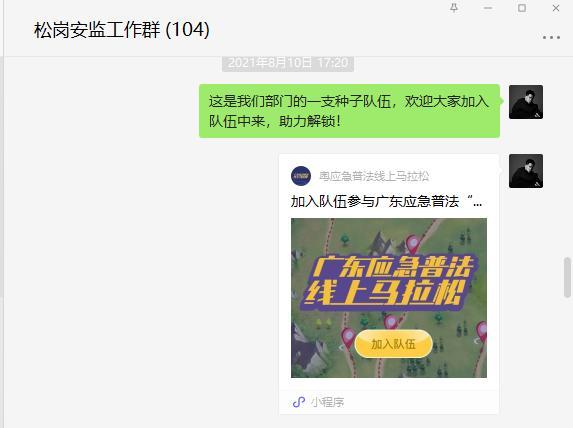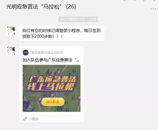自8月6日广东应急普法“线上马拉松”活动开始以来,坪山区各单位广泛发动单位职工、辖区企业、社区居民组建队伍参加活动。在参加活动的过程中,既加强了锻炼积攒了里程,又解锁问题增加了应急管理知识,还有一些幸运队友抽奖收获了物质奖励,参赛人员表示本次普法活动生动有趣,争取尽快通关到达终点。