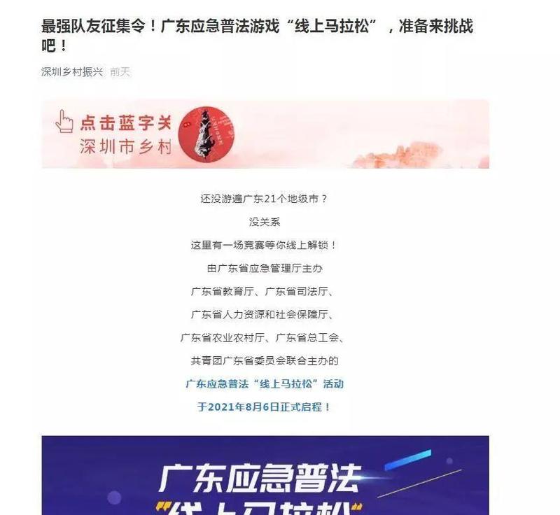 8月6日,广东应急普法“线上马拉松”活动正式开展。深圳市应急管理局高度重视此项普法活动,广泛动员各区、各部门、各单位组织相关人员和社会公众积极参与“线上马拉松”活动,实行“多组队、齐解锁”的游戏策略,取得优异成绩。