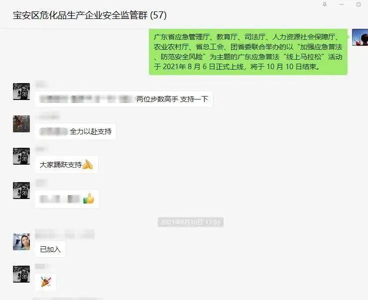 为推进应急普法,增强法治意识,罗湖区应急管理局从8月6日参加广东应急普法“线上马拉松”启动仪式后便高度重视此项普法活动,广泛动员区相关部门组织本单位、本行业领域相关人员和社会公众等积极参与“线上马拉松”活动,确保本次普法活动取得实效。